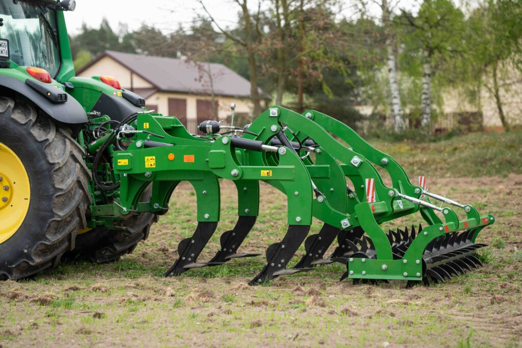 Głębosz przeznaczony jest do głębokiego spulchniania i uprawiania gleby. Dzięki zastosowaniu specjalnej konstrukcji zębów oraz wytrzymałych materiałów możemy wykonać głębokie spulchnianie, do 50 cm. Kolejną zaletą naszych głęboszy jest to, że każda sekcja wyposażona jest w siłownik hydrauliczny oraz hydro akumulator co bardzo dobrze zabezpiecza nasza maszynę. Podwójny wał kolczasty zapewnia odpowiednie doprawienie i wyrównanie uprawianej ziemi. Głębosze spulchniają ziemi i przywracają strukturę do pierwotnego stanu. Dzięki temu poprawiona zostaje nie tylko jakość ziemi, lecz także jej retencyjność. Rośliny mają tym samym lepszy dostęp do minerałów i składników odżywczych.